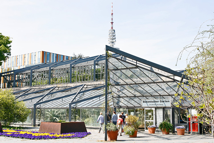 Zugang zu den Tropengewächshäusern über den Park „Planten un Blomen“,